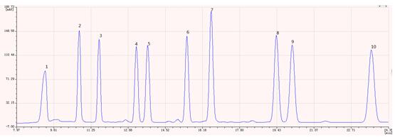 图3.多溴联苯醚规范样品色谱图