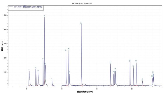 16种PAHs国家标准品SIM扫描仪阴阳离子流色谱图