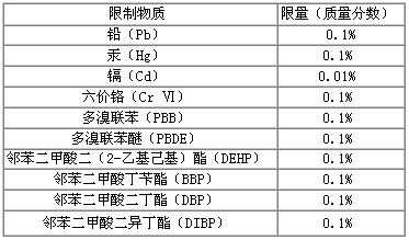 20多年6月4日,欧洲联盟关方公报(OJ)宣告RoHS2.0更正命令(EU)2015/863,真正将DEHP、DBP、BBP、DIBP添加附表Ⅱ限定皮肤工程设备与运输的明细清单表中,自此附表Ⅱ总共有九项,被迫把控工程设备与运输的,具体情况见下表: