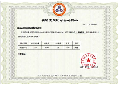附则1:试试室间检测及格合格证(塑化剂)