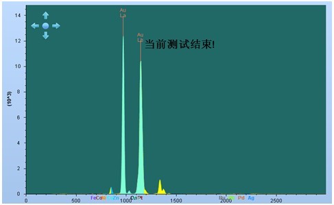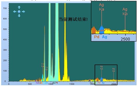 拔取某工厂生厂铂金饰物,利于EDX 3000PLUS检测设备,对其结束试验。一下图2如下,为检测设备试验点,可将供试品需试验点挪动到十字光标间结束试验。