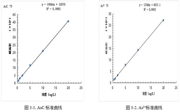 5种砷标准溶剂使用20mmol/L EDTA-2Na不同梯度方向密度的体例顺次被溶缩为0.5µg/L、1.0µg/L、2.0µg/L、5.0µg/L、10.0µg/L、20.0µg/L 杂质标准溶剂,时标定四种砷外形的5µg/L的单标溶剂通过这个方法来甄别多种不同砷外形出峰阶段。