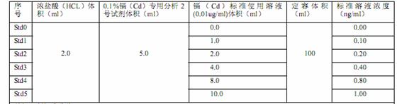 使用镉(Cd)实验室管理标准使用液体(0.01ug/ml),优级纯酸洗(HCL) ,0.1%镉(Cd)公共阐发 2 号化学制剂,去铁离子水(电容率≥10M欧姆)等化学制剂。
