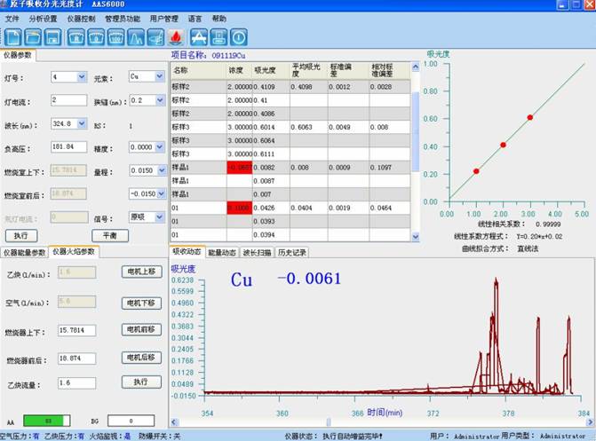 样品管理测验:于原子团接收入光谱图仪主波长324.8nm处,运用工作氛围-乙炔烈火,以水调零,侧量试液的吸光度,减去伴同试料的空白试着盐溶液的吸光度,从任務曲线上直播查有出错的铜质量浓度。