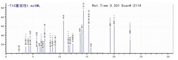 标样及处置后的样品在ESI+离子形式下停止阐发,规范品德谱图以下。