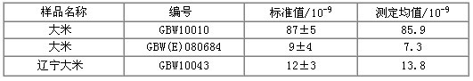 表1.有机大米中镉重元素校正作品